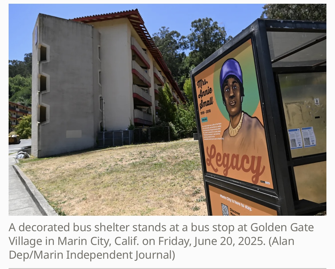 “The reason there are a lot of black people in Marin City is simply because Marin City was preserved by this White lady, Vera Schultz, who was a supervisor,” he said, saying she kept the tract from from being privately developed. In the late 1950s, associates of the architect Frank Lloyd Wright built Golden Gate Village, which is Marin’s largest public housing project.