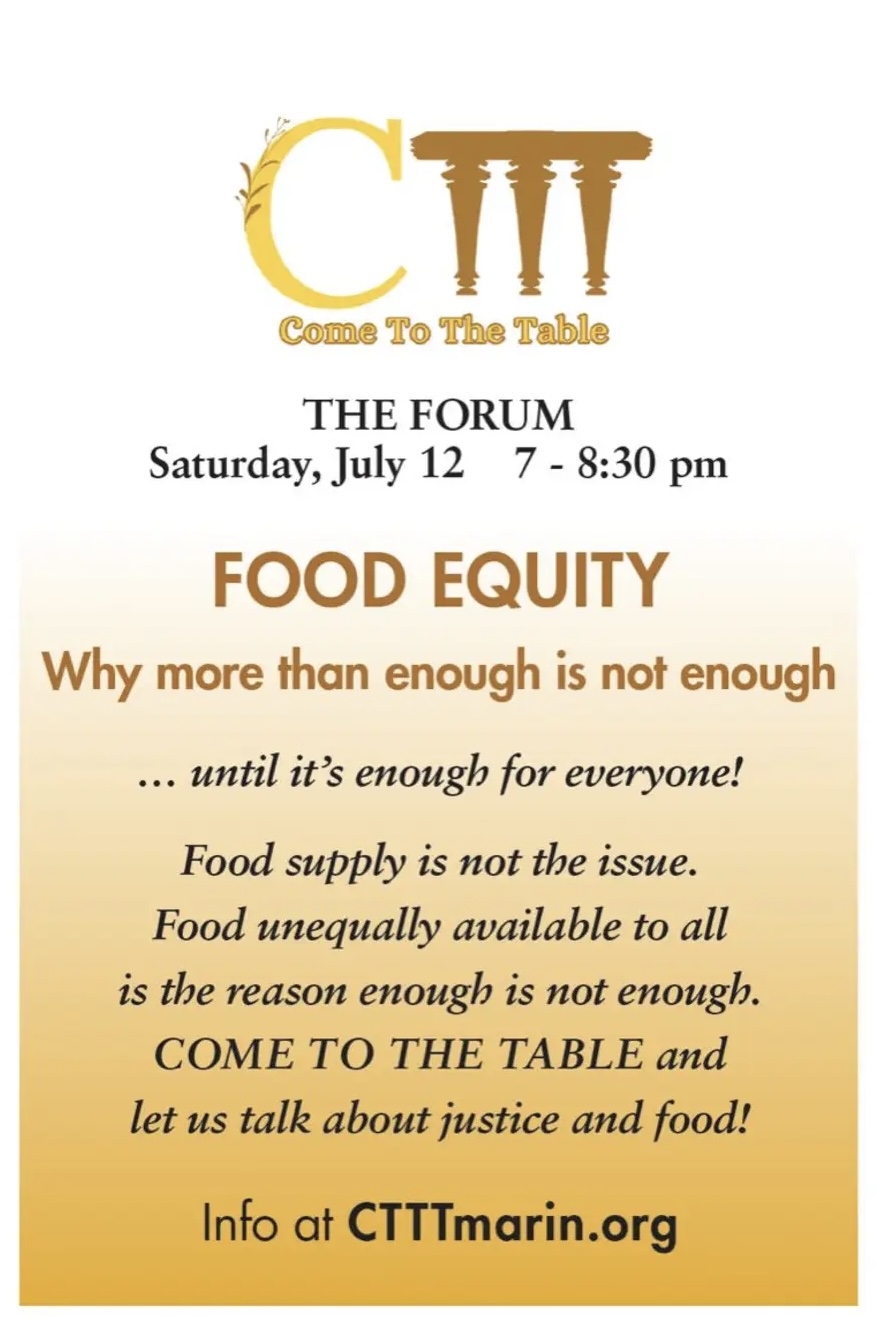 •July 12th Come to the Table Food Equity: Why More Than Enough is Not Enough