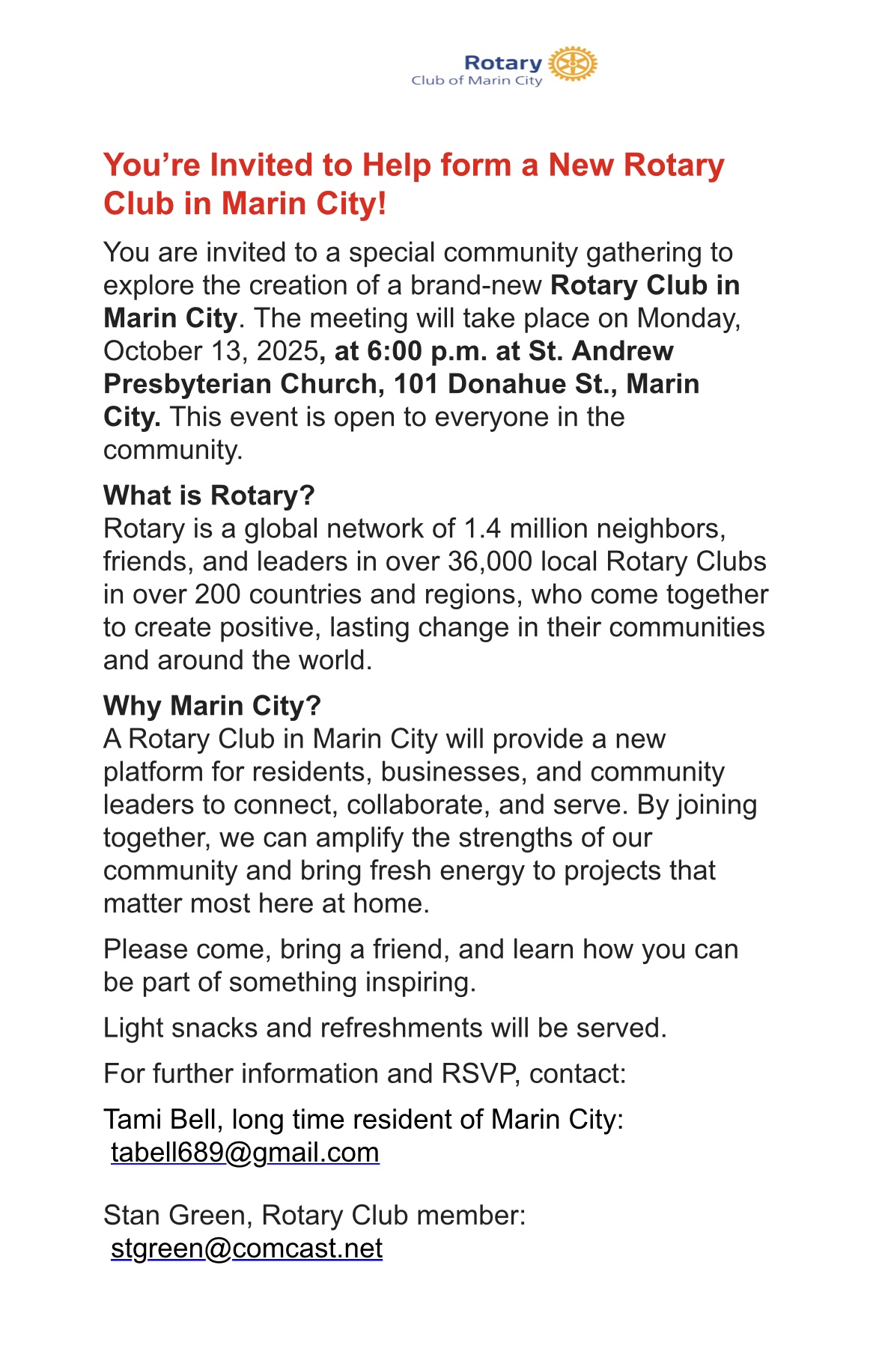 Please click here to subscribe for free or to contact Marin City News staff with any questions or to volunteer for any organization in Marin City.